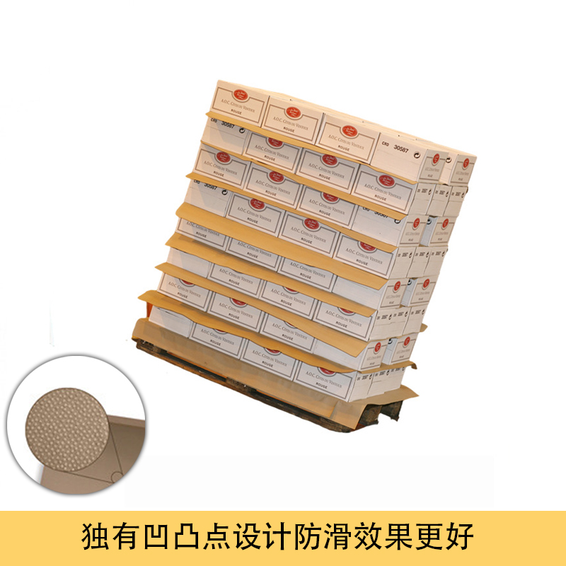 托盘防滑纸是继滑托板(slip sheet)后又成功开发研制的一种特殊纸张。它可安插在货物和货物、货物和托盘之间,起到防滑和保护产品的作用,防止货物在搬运过程中的滑落或倒塌,使托盘堆垛始终保持整洁美观,减少货物被损坏的机率。