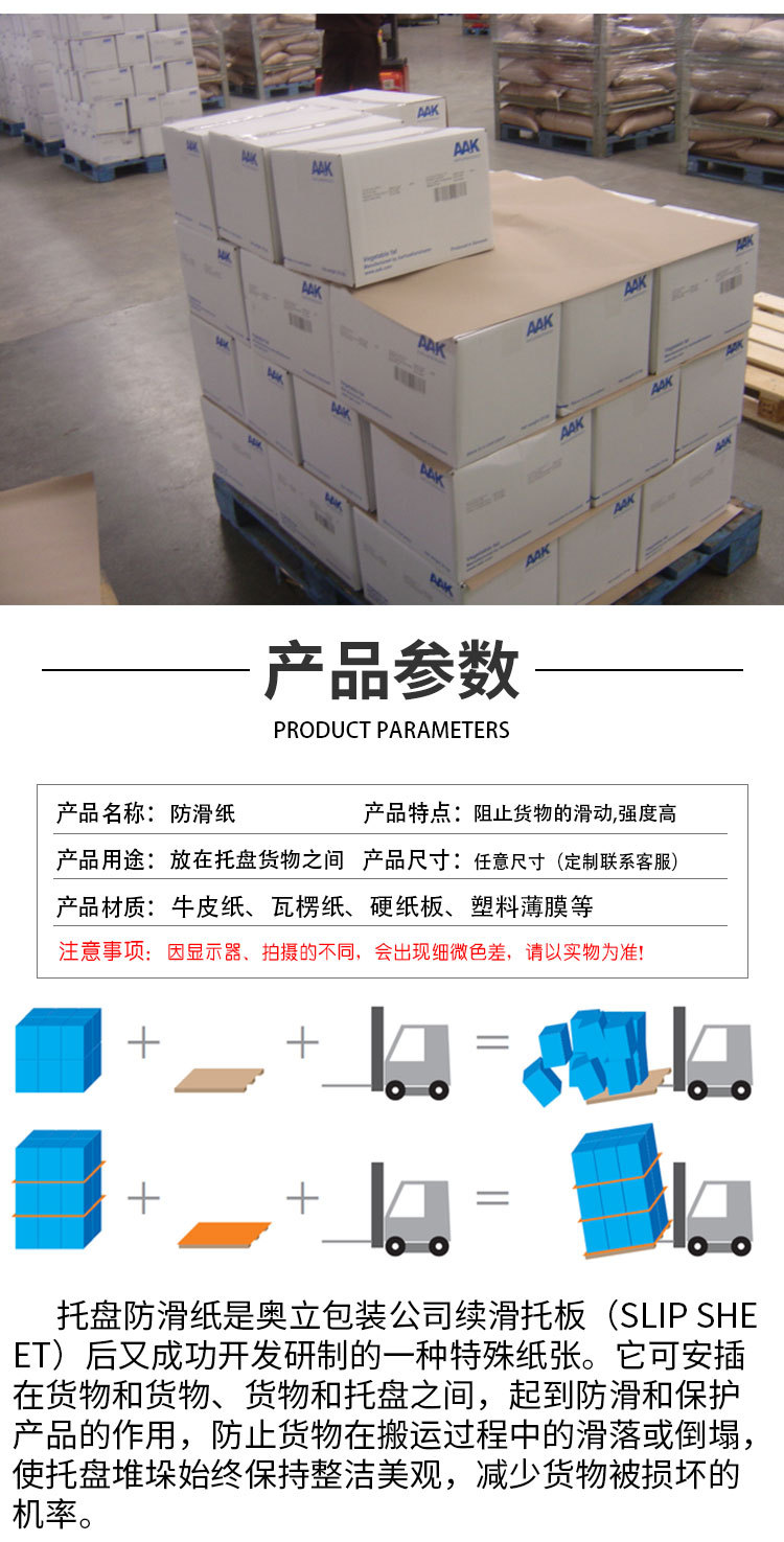 防滑纸适合各种包装的货物堆垛:纸箱、塑料箱、纸袋、玻璃制品、金属制品、橡胶制品、木制品及更多材质的包装。