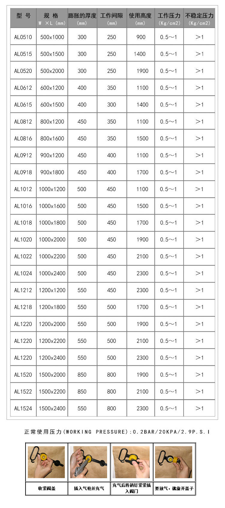 充气袋的常用规格