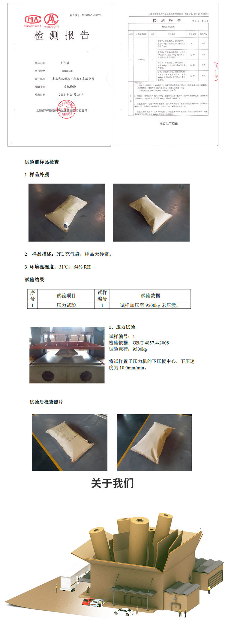 ● 我们的专职人员可以协助您做出装箱设计及产品的选用,与您共同完成装箱试验。